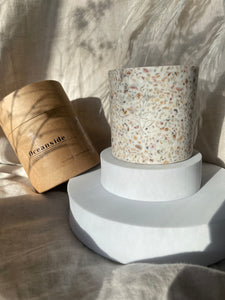 Merging impeccable craftsmanship with sustainability, our Signature Terrazzo Candles deliver a rich, layered fragrance experience. Once the candle is finished, plant the included wildflower-seeded dust cover in the terrazzo vessel to let beauty grow, long after the flame has gone out. Artful, aromatic, and intentionally made - this is more than a candle; it's a lasting experience.