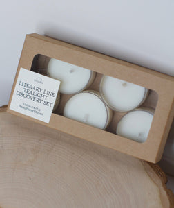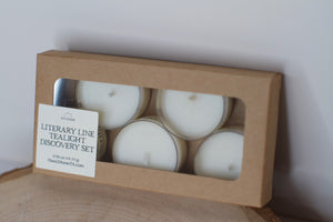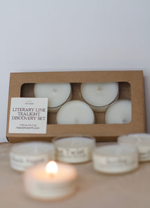 Meet the easiest way to “try before you buy”—a curated set of five tealights from our Literary Line: Scribe, One More Chapter, Blank Pages, Main Character Energy, and Plot Twist. Perfect for testing, gifting, or creating a reading-nook ritual.