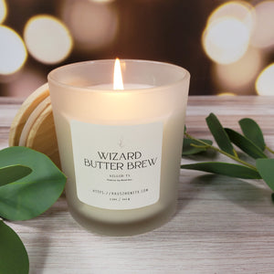 Inspired by the beloved buttered beverage of magical lore, this candle blends rich, creamy butterscotch with notes of effervescent vanilla and a hint of spiced warmth. As you light this enchanting candle, watch as the flickering flame dances like the flames in the common room, casting a warm and inviting glow. The scent, an artful concoction of bubbly enchantment and rich buttery goodness, will transport you to a world where every breath feels like a spell.